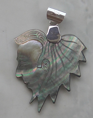 | Descriptions | :  | face made from black shell with litle silver for pendant |
