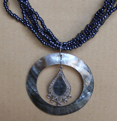 | Descriptions | :  | big neckalce roundmaterial from bead ,mop black,metal list art |