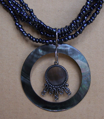 | Descriptions | :  | black mop necklace bali material black mop shell round black mop inside metal size round 6cm |