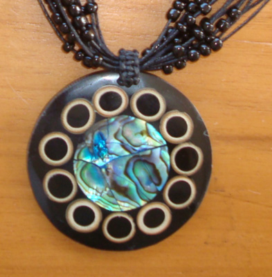 | Descriptions | :  | shell mosaic paua with bamboo onament |