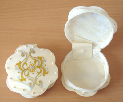 | Descriptions | :  | shell mosaic pearl box with nautural cuting and pain by gold ink |