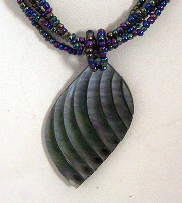 | Descriptions | :  | black mop necklace carved with bead in leaf form |