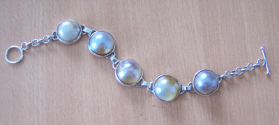 | Descriptions | :  | silver brecelet with half mabe pearl. size is for half pearl only. |