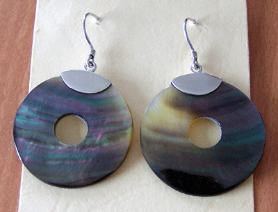 | Descriptions | :  | round black mop silver earring with hole inside |