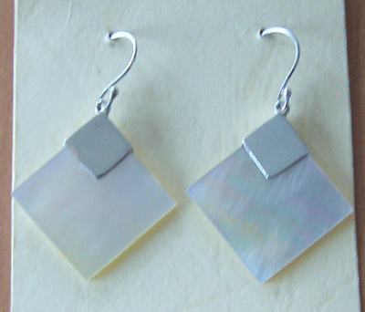 | Descriptions | :  | square white mop shell silver earring |