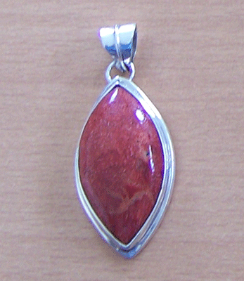 | Descriptions | :  | red coral silver pendant with leaf form |