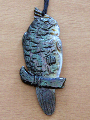 | Descriptions | :  | black mop shell necklace with bird carved |