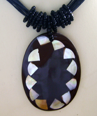 | Descriptions | :  | oval receine with mosaic yellow mop shell necklace with bead |
