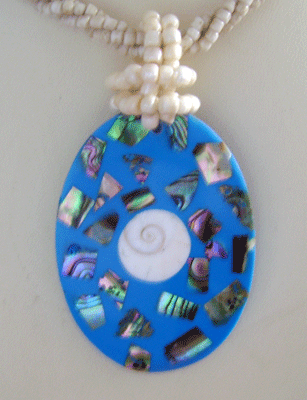 | Descriptions | :  | oval mosaic paua shell necklace with bead |