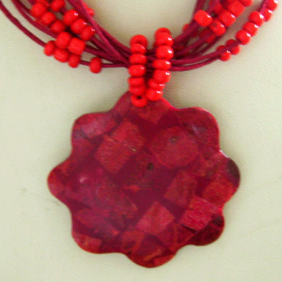 | Descriptions | :  | red coral mosaic in flower art receine necklace with bead |