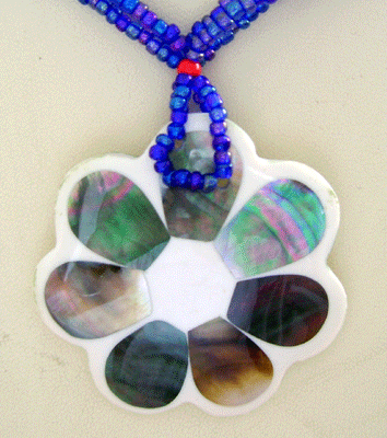 | Descriptions | :  | black mop shell mosaic in flower designe necklace with bead |