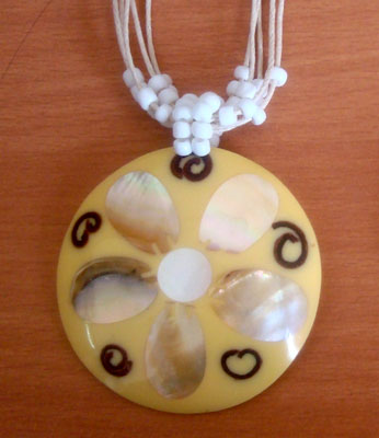 | Descriptions | :  | flower mosaic art yellow mop shell necklace with white bead |
