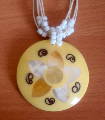| Descriptions | :  | flower mosaic art yellow mop shell necklace with bead |