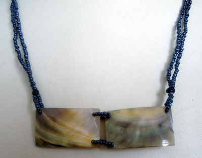 | Descriptions | :  | bead necklace with two square black mop shell, and the size is one shell size only |