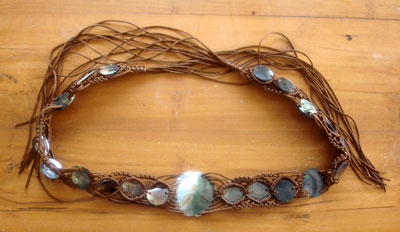 | Descriptions | :  | black mop shell belt with brown string, contain 21 cuts shell, and the size is shell size only |