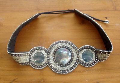 | Descriptions | :  | black mop shell belt with brown bead, the size is shell size only |