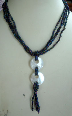 | Descriptions | :  | round white mop shell necklace with paua colour bead string |