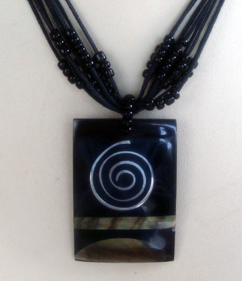 | Descriptions | :  | black mop shell in square black receine necklace with black bead |
