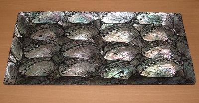 | Descriptions | :  | abalone shell crafts try back side with black paint |