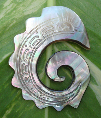 | Descriptions | :  | spiral art carving from mother of pearll black black mother of pearl from tahiti |