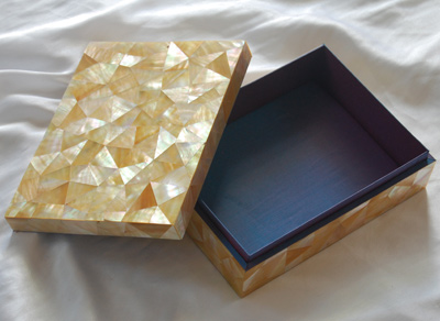 | Descriptions | :  | jewelry box from mother of pearl yellow lip shell we used only yellow part shell |