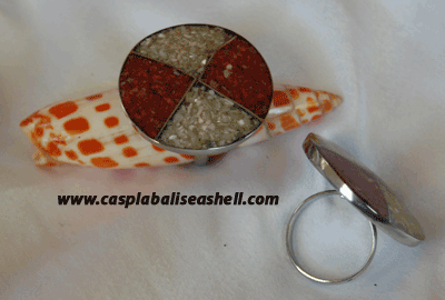 | Descriptions | :  | shell ring with receine combine some coral red colour we amde shell ring with stainless from indonesia |