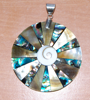 | Descriptions | :  | round pendants with silver clap art natural we used paua,mop etc all difrent shell cutting in one plate silver pendants |