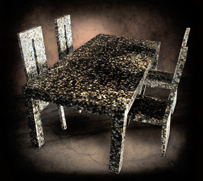 | Descriptions | :  | 1 dinning table 6 chairs mother of pearl black lip tahitian shell inlay mosaic art indonesia we specialist inlay all items art crafts shell |