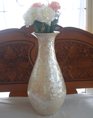 | Descriptions | :  | shell vases made from material mother of pearl indonesia we select best white pure shell for inlay mosaic vases with high quality luster flame shell |