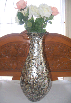 | Descriptions | :  | shell black pearlised tahitian art mosaic crafts luster flame vases ,the luxury shell vases quality from bali balinese shell vases indonesia |