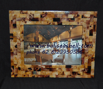 | Descriptions | :  | brown pen lip shell frame photo art ,frame photo from seashell black pen lip shell indonesia our company manufacture or producer directly from all type seashell ,design can requiered from customer |