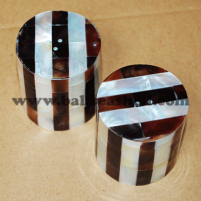 | Descriptions | :  | salt and red paper box or dish made from white mop and black pen lip shell seashll crafts and gifts industry indonesia seashel box crafts art |