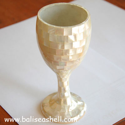 | Descriptions | :  | glass for wine art or dring glass made covered with white mother of pearl for making litle high and exlusive products made from mother of pearl glass ,high mosaic for glass art crafts indonesia |