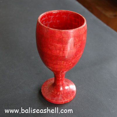 | Descriptions | :  | red glass art for wine covered with red coral art crafts mosaic inlay decorative shell coral mosaic handmade art glass art crafts indonesia handmade |