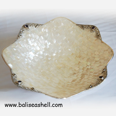 | Descriptions | :  | seashell bowl crafts with silver handmade indonesia seashell manufcatures crafts inlay decorative art with silver |