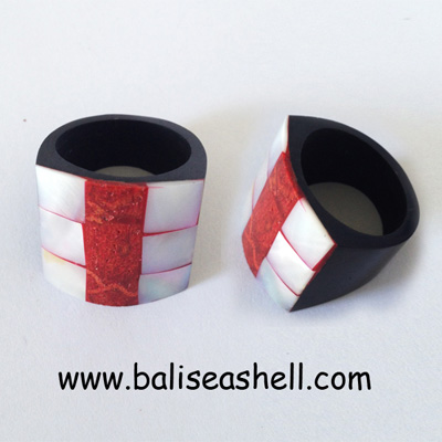 | Descriptions | :  | shell ring made from bali with used mother of pearl combine coral red crafts sea shell jewelry indonesia |