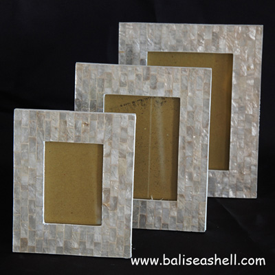 | Descriptions | :  | set frame photo holder with 3 size set we made from shell capis pearl for made set 3 size frame photo from seashell crafts art bali |