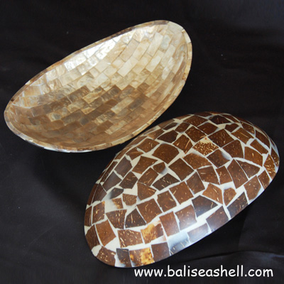 | Descriptions | :  | shell with coco bowl art crafts 3 color (Gold, White, Mix) used material coconut and sea shell mosaic for handicrafts indonesia |