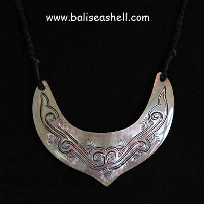 | Descriptions | :  | seashell carving necklace from bali used mother of pearl black pearl luster seashell pinctada margaretiferra seashell with art necklace fashion accesories |