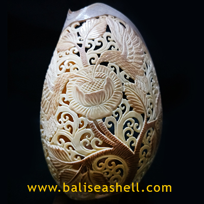 | Descriptions | :  | Melo Shell Hummingbird style carving for decoration, it is indonesia shell with pearlised natural colour. |