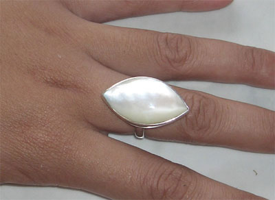 | Descriptions | :  | Ring made from silver and inlay with Mother of pearl shell white nature with big thickness special |