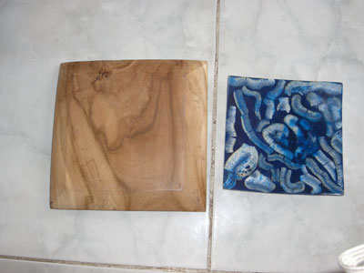 | Descriptions | :  | plate made from green coral with receinic slight and holder by plat teak wood thickness 30mm |