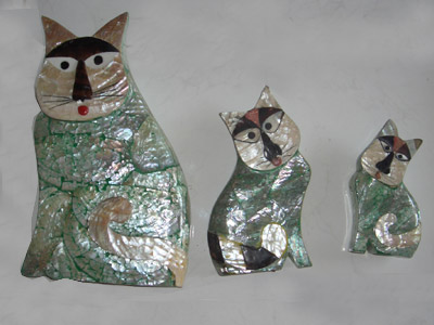 | Descriptions | :  | cat ornament crafts made from small abalone 7 eyes shell mixed by glue receinic for colourfull |