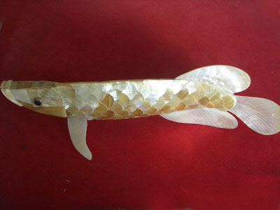 | Descriptions | :  | fish arwana ornament made from shell of mother of pearl this artistic crafts |