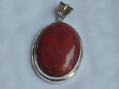 | Descriptions | :  | red coral pendant with silver with around form |