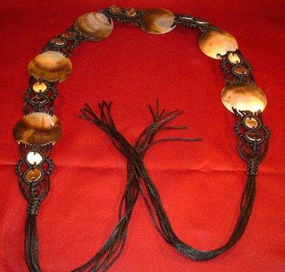 | Descriptions | :  | Belt made from mother of pearl black indonesia we desighn by around size 50mm and small 15mm art desighn |